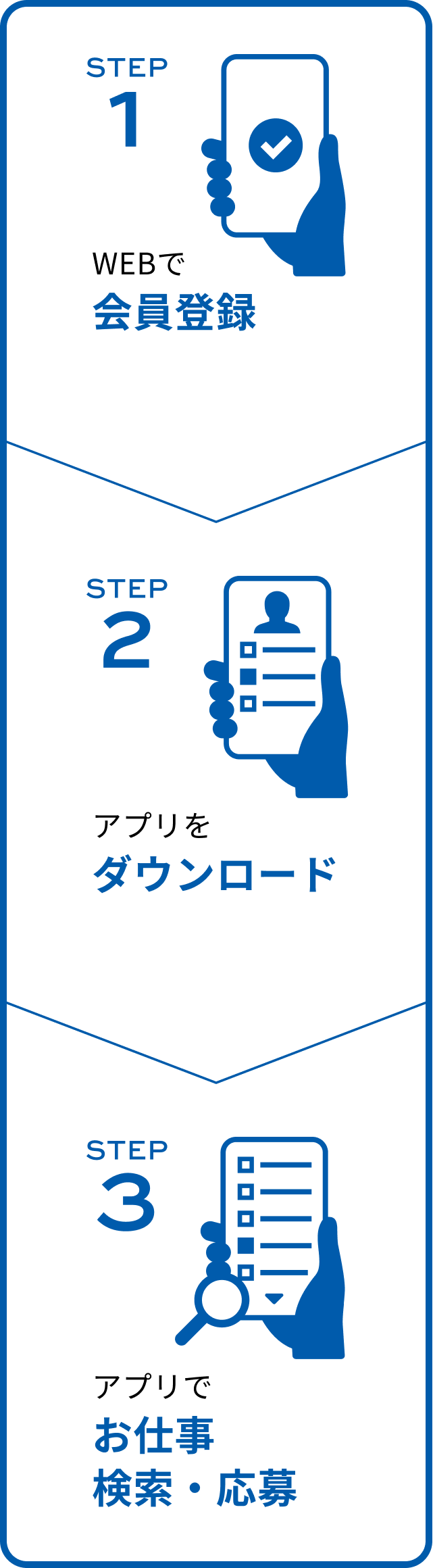 ※求人情報の閲覧やご応募、給与振込のために、事前に個人情報やご本人様のお写真、給与振込口座情報のご登録が必要になります。