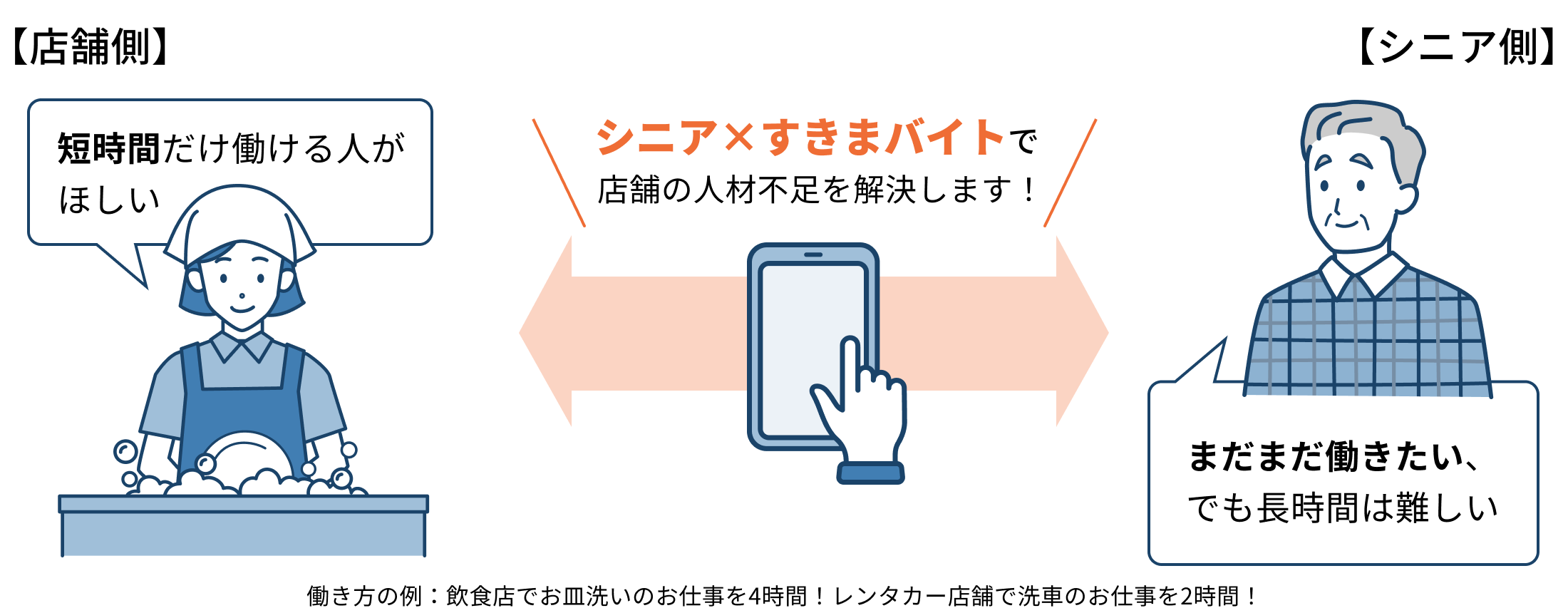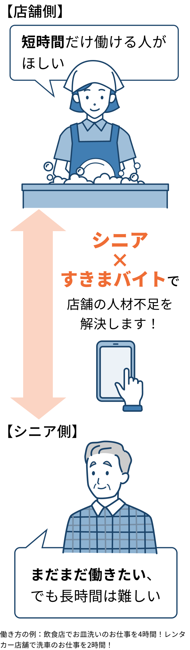 人材不足の店舗と働きたいシニアが安心してつながる仕組みを提供します!